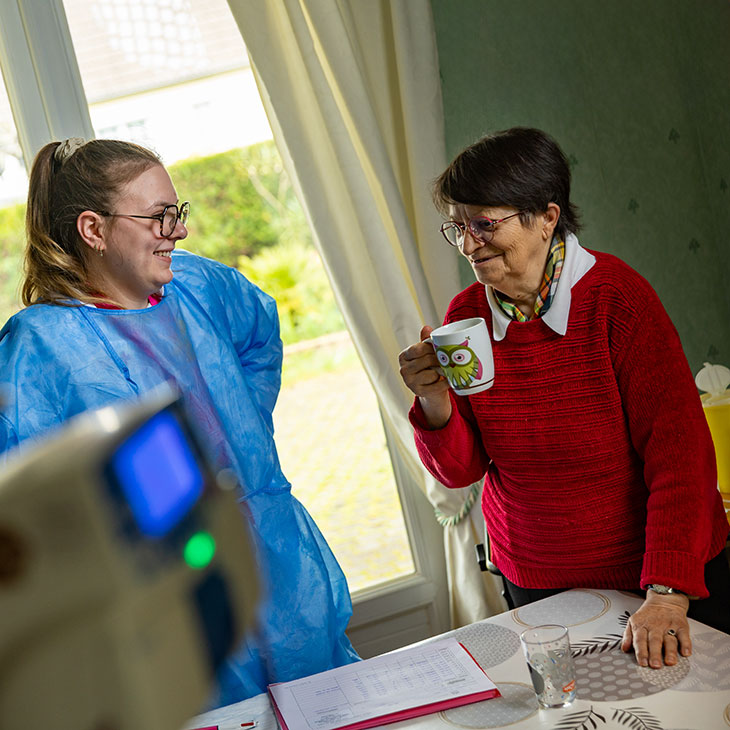 Les infirmiers, aides-soignants et autres professionnels de santé se rendent à votre domicile afin de réaliser les soins conformément au projet thérapeutique.